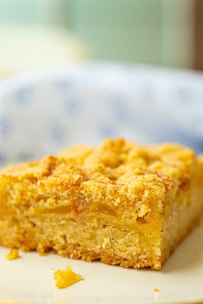 Soft, buttery bars layered with sweet peaches and topped with a crumbly streusel topping. These peach crumb bars make a delicious summer dessert or sweet snack loved by kids and adults alike.